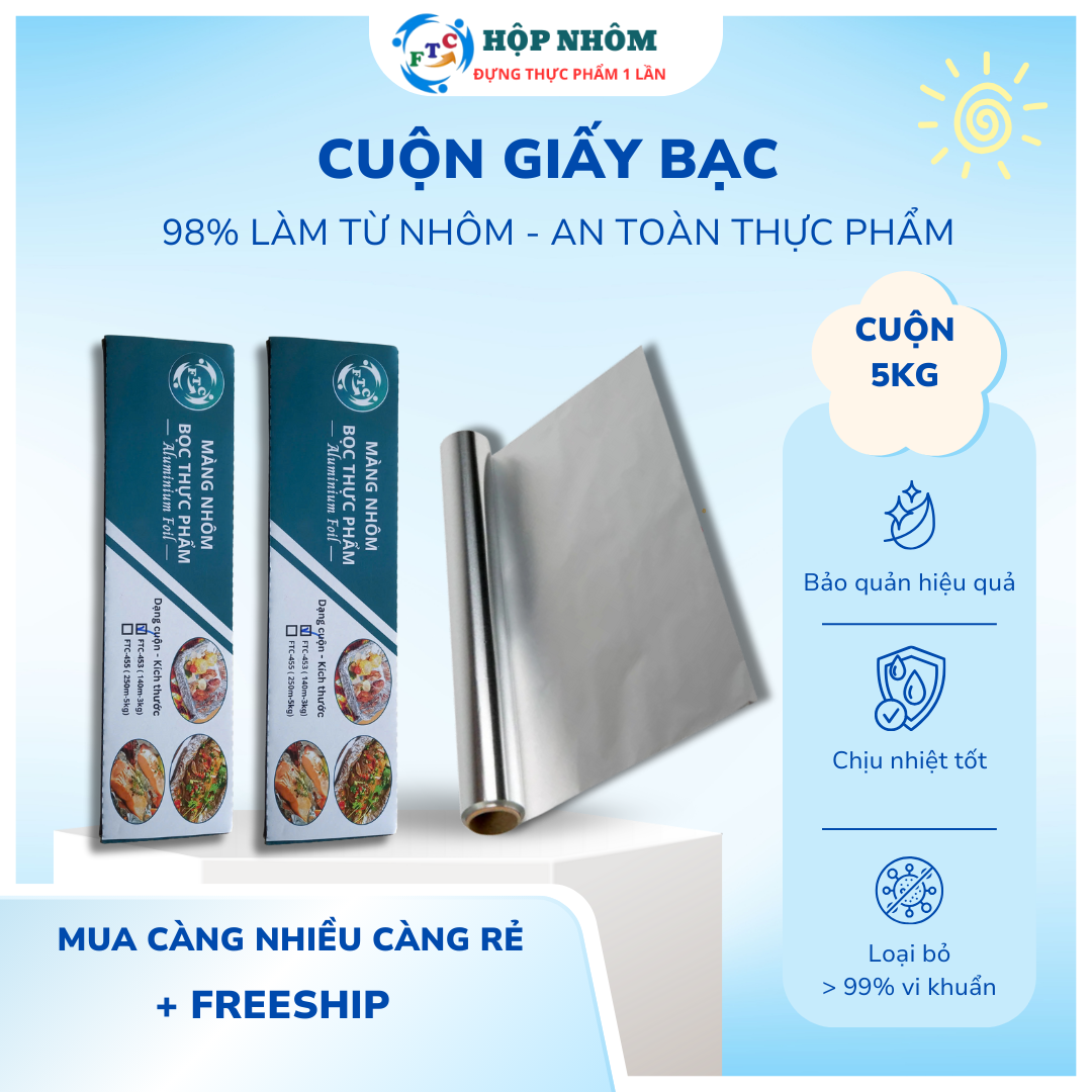 FTC – KhayNhôm.net là nhà sản xuất và phân phối hàng đầu các sản phẩm cuộn giấy bạc, hộp nhôm, khay giấy bạc chính hãng tại Việt Nam. Với hơn 10 năm kinh nghiệm, FTC tự hào cung cấp: