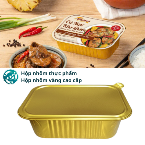 Hộp nhôm vàng cao cấp là dòng bao bì thực phẩm được sản xuất từ nhôm thực phẩm chất lượng cao, bề mặt phủ màu vàng sang trọng, chuyên dùng để đựng đồ ăn chín, đồ hộp, lẩu cấp đông, thịt kho, thực phẩm chế biến sẵn.